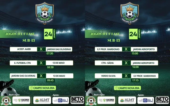A Copa Princesinha do Paraguai terá uma programação intensa de futebol de base neste sábado, dia 24 de janeiro. As partidas da categoria sub-13 acontecerão