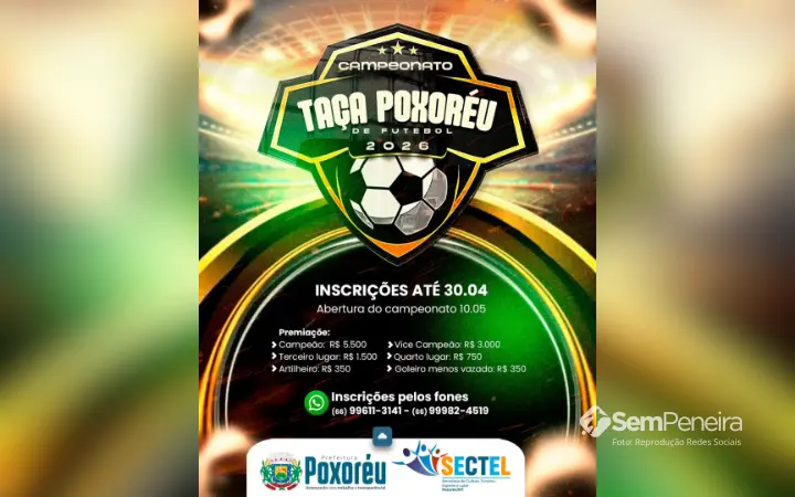 A cidade de Poxoréu já se prepara para mais uma grande competição no calendário esportivo. A Taça Poxoréu de Futebol 2026 está com inscrições abertas