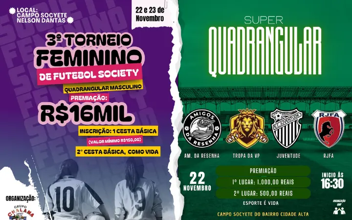 O esporte e a solidariedade se unem em Cáceres! Nos dias 22 e 23 de Novembro, a cidade sedia o 3º Torneio Feminino de Futebol