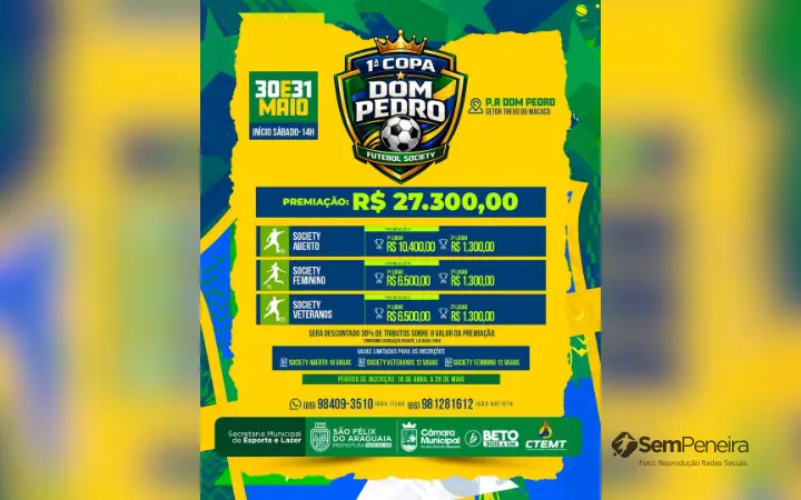 O futebol society vai ganhar mais um grande palco em São Félix do Araguaia com a chegada da 1ª Copa Dom Pedro. A competição promete reunir equipes da região em um fim de semana de muito jogo pegado, disputa e aquele clima raiz que o boleiro gosta.