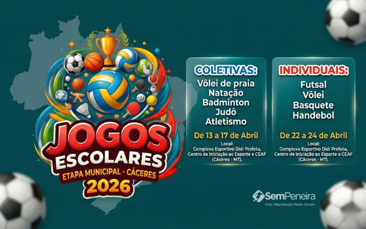 O calendário esportivo estudantil já está em andamento em Cáceres com a realização dos Jogos Escolares 2026 – etapa municipal. A competição reúne estudantes em diversas modalidades, promovendo integração, desenvolvimento e fortalecendo o esporte de base no município.