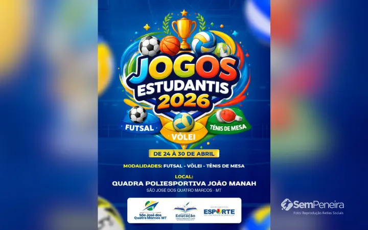 A cidade de São José dos Quatro Marcos já vive a expectativa para mais uma grande edição dos Jogos Estudantis. O evento vai reunir alunos, professores e a comunidade em uma semana marcada por competição, integração e valorização do esporte escolar.