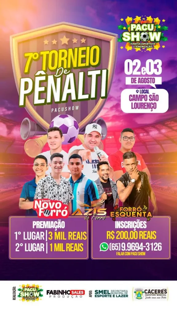 A cidade de Cáceres se prepara para receber um dos eventos esportivos mais esperados do ano: o 7º Torneio de Pênalti Pacu Show. Nos dias 02 e 03 de agosto, o Campo São Lourenço será o palco de grandes disputas e muita diversão para todos os amantes do esporte.