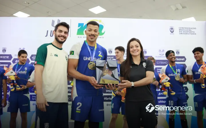 A equipe masculina de voleibol Seleção Vôlei Luverdense Unilasalle conquistou um feito histórico nos Jogos Universitários Brasileiros (JUBs). Na grande final, realizada em Natal (RN), o time mato-grossense venceu o Centro Universitário Aparício Carvalho (FIMCA – RO) por [Adicionar placar da final, se disponível em pesquisa] sets a [Adicionar placar da final, se disponível em pesquisa], garantindo não apenas o cobiçado título, mas também o acesso à Divisão B da competição nacional. A equipe retorna para casa com uma campanha invicta, celebrada como resultado de dedicação e um forte apoio municipal.